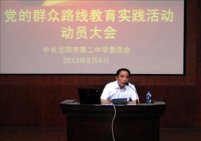 動員大會由沈陽二中黨委副書記、紀(jì)委書記、沈陽二中教育實(shí)踐活動領(lǐng)導(dǎo)小組常務(wù)副組長王爽旻同志主持。同時(shí),并宣讀了“沈陽二中黨的群眾路線教育實(shí)踐活動實(shí)施方案”。她強(qiáng)調(diào)了學(xué)校開展教育實(shí)踐活動的總體要求、基本原則、主要任務(wù)、主要步驟、組織領(lǐng)導(dǎo)和要求。