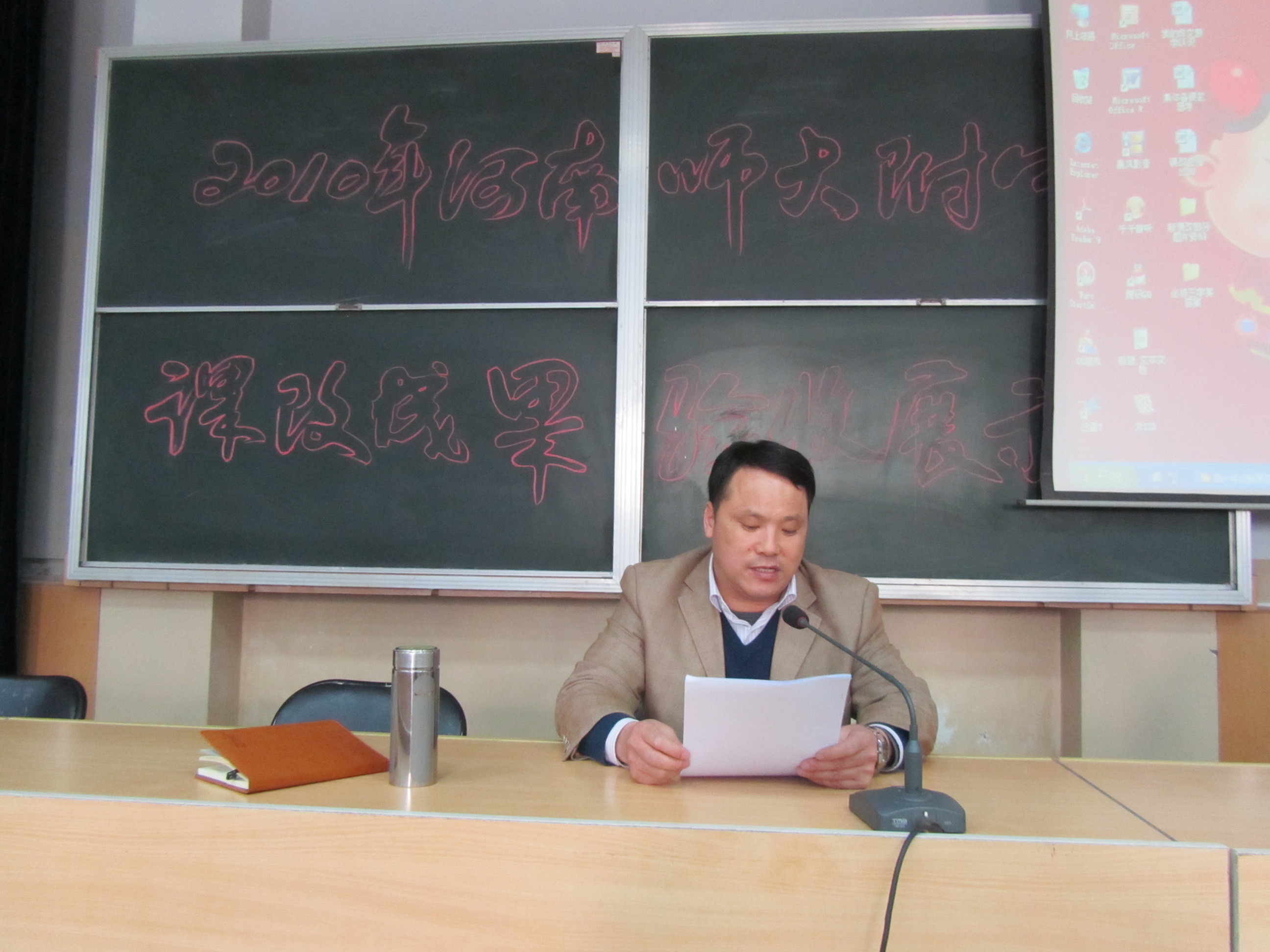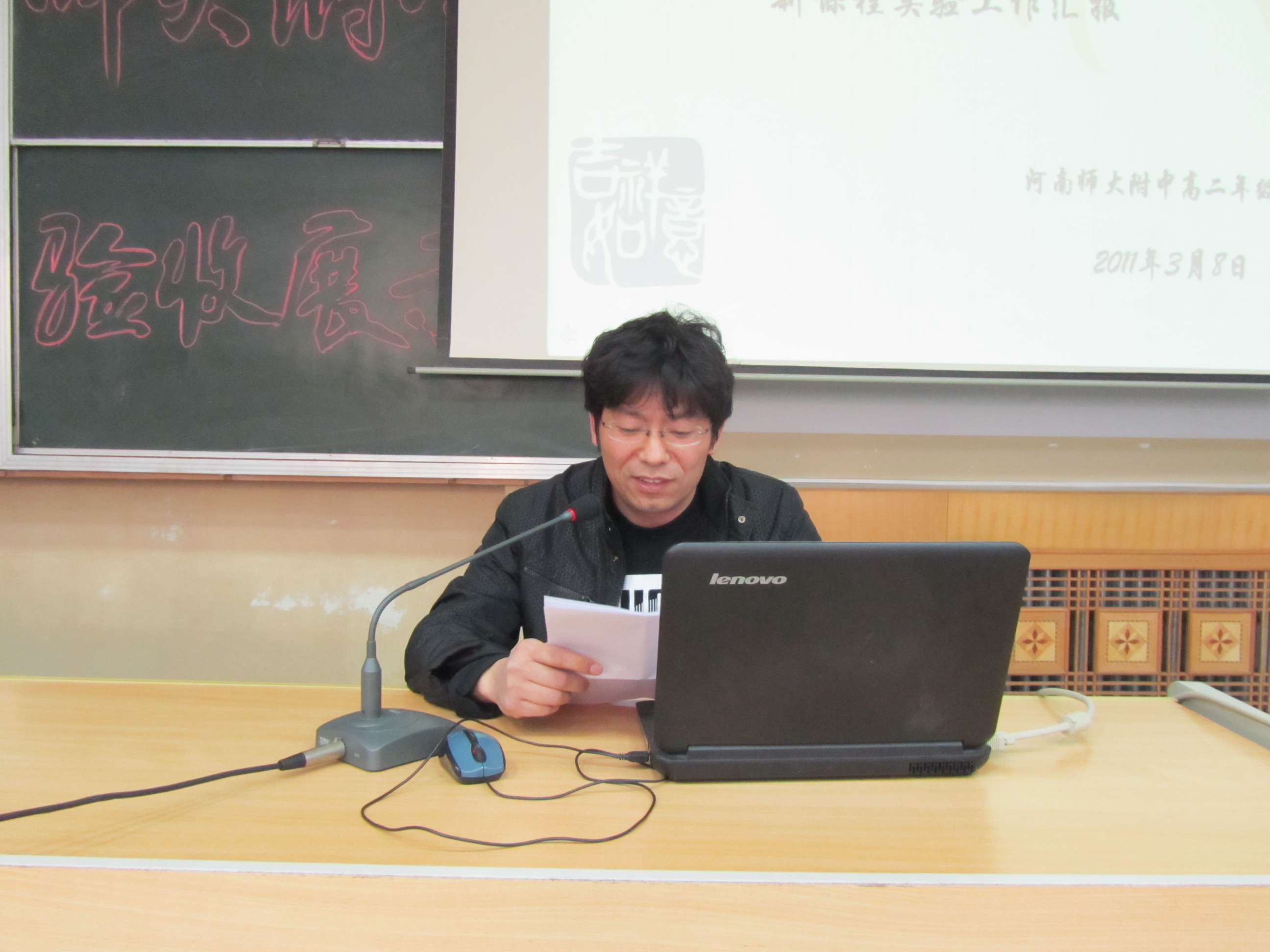 在聽取了大家的匯報(bào)之后,閆新全副校長(zhǎng)首先發(fā)表了講話,希望大家在認(rèn)真聽取匯報(bào),欣賞成果的同時(shí),分析現(xiàn)狀,釋疑解惑,檢查自己的工作,努力發(fā)現(xiàn)問題,尋找對(duì)策,力爭(zhēng)實(shí)現(xiàn)形式與實(shí)際的統(tǒng)一,使各方面做到最好。他認(rèn)為此次會(huì)議準(zhǔn)備充分,內(nèi)容充實(shí),材料完整,內(nèi)涵豐富,大家做到了建章立制,按規(guī)辦事,在注重過程中,把成績(jī)講夠,把問題說透,思考深刻,方式明確,是一個(gè)不錯(cuò)的開始。也提出了下一部關(guān)于新課改工作的具體要求,希望大家能夠把更新觀念放在第一位,樹立“大教育觀”,更新學(xué)習(xí)觀、教學(xué)觀、學(xué)生觀、教師觀;認(rèn)真執(zhí)行新課程方案,開足開齊各門功課,改革教與學(xué)的方式,重視校本教材研發(fā);關(guān)注教育過程,善于歸納總結(jié),做好模塊化教學(xué)、綜合素質(zhì)評(píng)價(jià)、學(xué)分制管理等各項(xiàng)工作;牢牢樹立育人第一意識(shí),做到教育與教學(xué)相統(tǒng)一。開展好周六主題教育活動(dòng)和系列班會(huì)活動(dòng),堅(jiān)持好社團(tuán)活動(dòng)和六大文化節(jié)活動(dòng),貫徹好在教學(xué)中德育為首,能力為重,保障學(xué)生的全面發(fā)展。