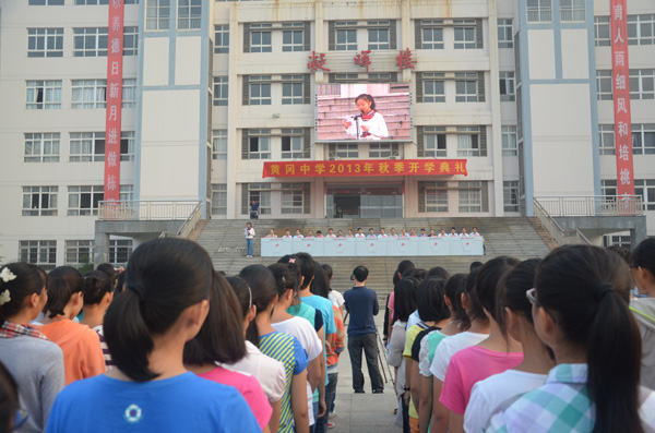 9月9日上午,我校在中心廣場隆重舉行2013年秋季開學(xué)典禮。黃岡中學(xué)校長、黨委書記劉祥,黨委副書記、副校長、紀(jì)委書記黃治民,副校長陳忠新、方學(xué)德、張凡,工會主席王實泉,各處室負(fù)責(zé)人出席開學(xué)典禮。開學(xué)典禮由政教處副主任劉海英主持。