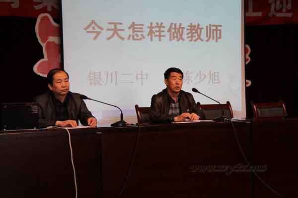 會上,銀川二中黨委委員、副校長陳少旭為青年教師們做了題為《今天怎樣做教師》的報告。報告中陳校長將自己總結(jié)出的新時期優(yōu)秀教師的十二條標準列出與參會者分享,并結(jié)合自己多年的教育教學(xué)經(jīng)驗逐一進行解讀,尤其是報告中,他以我校發(fā)展中涌現(xiàn)出的一些優(yōu)秀青年教師為例證,具有很大的感染力和說服力。
