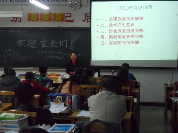 在第一階段的全年級家長大會上,劉新來校長首先主要就以下幾點向家長作介紹與交流,即高二年級成績分析、大學招生政策調整、學生發(fā)展規(guī)范及致家長的幾點建議,與會家長認真聆聽了劉新來校長的講話。第二階段各班級各顯神通,采取了多種方式組織交流活動。期間各班主任主要就班級月考、段考情況、學校有關規(guī)范要求及班級管理策略等方面和家長進行了匯報;其后班主任及部分科任老師耐心、真誠的與家長進行了詳細的交流。