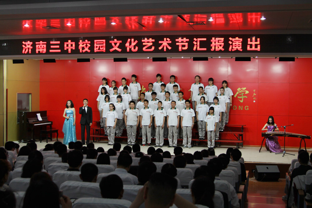 作為省級規(guī)范化學(xué)校,濟(jì)南三中秉承“有教無類,揚(yáng)長避短,為每個學(xué)生的永續(xù)成功加油”的辦學(xué)理念,積極搭建平臺,使每個學(xué)生的個性和潛能都得到充分而自由的發(fā)展。學(xué)校成立了藝術(shù)教育中心,下轄民樂、民舞、合唱、播音主持、美術(shù)、健美操等個12社團(tuán),成員遍及各年級各班。藝術(shù)教育中心在豐富校園文化生活,展現(xiàn)學(xué)生的青春風(fēng)采和精神風(fēng)貌,激發(fā)學(xué)生對藝術(shù)的興趣和愛好,培養(yǎng)學(xué)生健康的審美情趣、良好的藝術(shù)修養(yǎng)、全面提高學(xué)生的綜合素養(yǎng)、為高校培養(yǎng)高素質(zhì)后備人才等方面發(fā)揮著積極作用,深受各方歡迎。