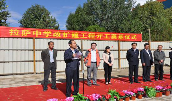 2012年8月25日上午,我校隆重舉行了拉薩中學(xué)改擴(kuò)建工程開工奠基儀式,出席儀式有西藏自治區(qū)教育廳副巡視員韓志洪,基教處鐘吉云處長、規(guī)劃處陳富順處長;拉薩中學(xué)黨總支書記扎西頓珠、校長李孝裕、副校長巴桑次仁、副校長林澤金、學(xué)校各科室負(fù)責(zé)人和江蘇教育設(shè)計院創(chuàng)作部主任周慶生、西藏銀創(chuàng)公司董事長宋仕銀、富順富達(dá)公司代表李召令及監(jiān)理單位代表等。儀式由巴桑次仁副校長主持。