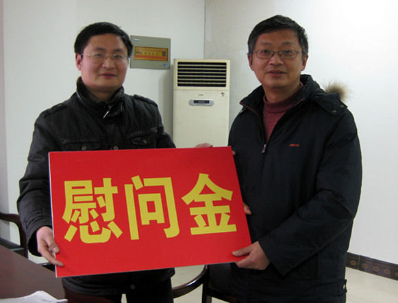 在新春佳節(jié)即將到來之際,蚌埠二中領(lǐng)導(dǎo)來到“中國好人”李建國的辦公室,慰問李建國老師,對李老師的事跡進(jìn)行表揚(yáng),并勉勵(lì)李老師繼續(xù)發(fā)揚(yáng)“中國好人”精神,為學(xué)校的教育事業(yè)做出更大的貢獻(xiàn)。圖為李新義校長向李建國老師贈送慰問金。