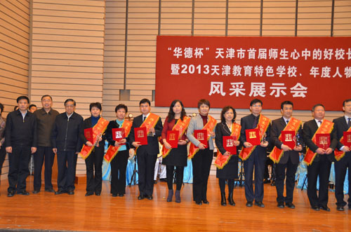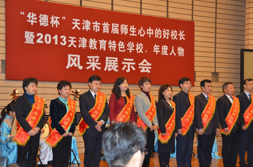 3月15日上午,天津市首屆師生心中的好校長(zhǎng)暨2013年天津教育特色學(xué)校、年度人物頒獎(jiǎng)盛典在天津財(cái)經(jīng)大學(xué)隆重舉辦。我校李旭校長(zhǎng)榮獲首屆師生心中的好校長(zhǎng)榮譽(yù)。原人大副主任王鴻江同志、市教委巡視員、市教委副主任黃永剛同志、原市教衛(wèi)工委副書(shū)記楊希祿同志等市領(lǐng)導(dǎo)和各區(qū)縣教育局局長(zhǎng)出席大會(huì),并為獲獎(jiǎng)單位和個(gè)人頒獎(jiǎng)。我區(qū)鄭慶東局長(zhǎng)應(yīng)邀出席大會(huì),并為獲獎(jiǎng)學(xué)校頒獎(jiǎng)。