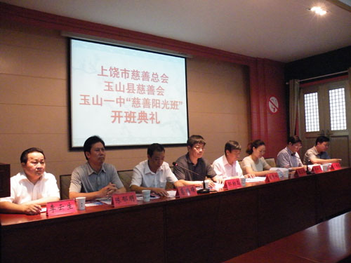 出席開班典禮的領(lǐng)導(dǎo)嘉賓有:上饒市慈善總會專職副會長兼秘書長揭秀林、玉山縣副縣長鄢翔高、玉山縣民政局局長葛鵬曙、玉山縣教育局局長吳柏巨、玉山一中校長李云生、上饒市慈善總會項(xiàng)目部副部長程正苗、玉山縣民政局局長陳郁民、玉山縣慈善總會辦公室主任王耀標(biāo)。參加典禮的人員有:玉山一中部分師生和慈善陽光班的全體學(xué)生。