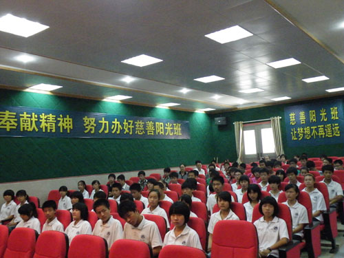 “慈善陽光班”由上饒市慈善總會捐助。該班共有特優(yōu)特困學(xué)生50名,高中三年,慈善總會給每名學(xué)生捐助6000元,合計(jì)人民幣30萬元。“慈善陽光班”的開辦,使我校的助學(xué)體系更加完善,體現(xiàn)了社會愛心人士對貧寒學(xué)子的關(guān)愛。