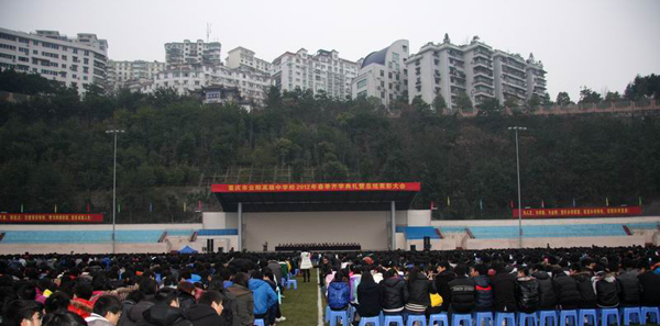 2月13日上午,云陽(yáng)中學(xué)2012年春季開學(xué)典禮暨總結(jié)表彰大會(huì)在標(biāo)準(zhǔn)化塑膠運(yùn)動(dòng)場(chǎng)隆重舉行,全體行政領(lǐng)導(dǎo)、師生員工和家長(zhǎng)代表6000余人參加。