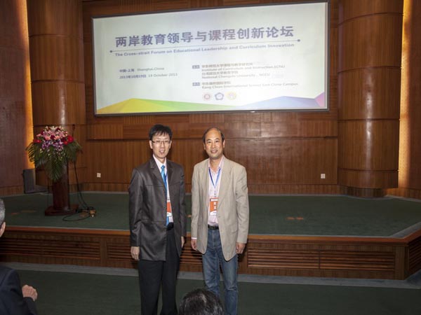 2013年10月18~19日,盧明校長應邀出席由華東師范大學課程與教學研究所與臺灣政治大學教育學院聯(lián)合舉辦的“兩岸教育領導與課程創(chuàng)新論壇”,18日盧校長出席了兩岸部分與會專家“圓桌會議”,19日發(fā)表了題為“學校課程建設的理念與行動”的主題演講。