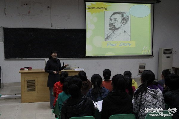 本次研討課淮北一中的張穎穎老師和李繼波老師分別執(zhí)教的是高三語法復(fù)習(xí)課和高一閱讀課。兩位老師新穎的設(shè)計(jì),流利的口語,積極有效的課堂活動(dòng)得到了聽課老師們的一致好評(píng)。濉溪一中的王彩蓮老師代表馬穎名師工作室成員做了精彩的點(diǎn)評(píng)。