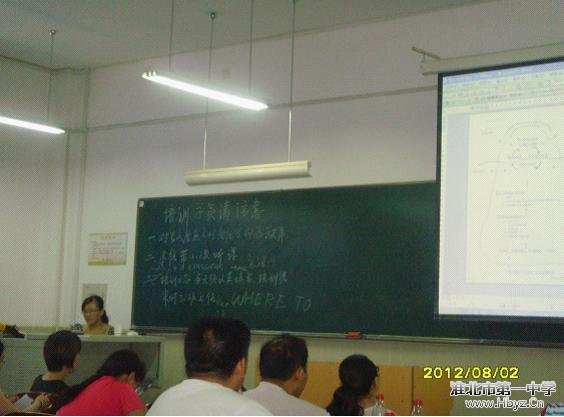 2012年7月底至8月初,淮北市高中英語馬穎名師工作室承擔了淮北市中小學繼續(xù)教育高中英語課程培訓的全部授課任務。課程培訓的內容主要有:《專業(yè)理念與師德》、《專業(yè)標準專業(yè)知識》、《專業(yè)標準之專業(yè)技能》、《現(xiàn)代知識觀與學生能力培養(yǎng)》、《學科最新動態(tài)、發(fā)展趨勢與教學策略探討》。