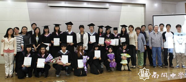 2013年5月27日,南開中學國際部舉行了2013屆高、初三年級畢業(yè)典禮。馬躍美校長出席了畢業(yè)典禮并為畢業(yè)生們頒發(fā)了畢業(yè)證書。國際部2013屆初、高三畢業(yè)年級學生共有19人,其中高中畢業(yè)生16人,初中畢業(yè)生3人。畢業(yè)生們在學業(yè)上取得了優(yōu)異的成績,印廷宰等8名同學在漢語水平考試中達到最高級,并獲得了國際部頒發(fā)的獎學金。李裕定同學已被北大國際關系學院錄取、李韓美同學已被北大生命科學院錄取,王安然同學已被北大醫(yī)學部錄取,樸有娜同學已被人民大學錄取,其他同學還在等待清華大學、上海交大等知名高校的錄取通知。