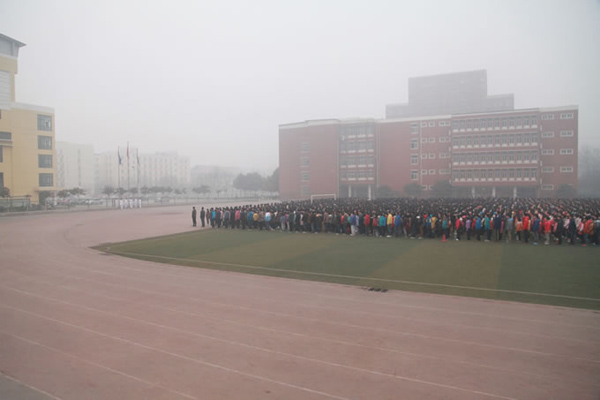 2013年2月25日清晨,河南省實驗中學全體師生齊聚運動場隆重舉行新學年第一次升旗儀式。