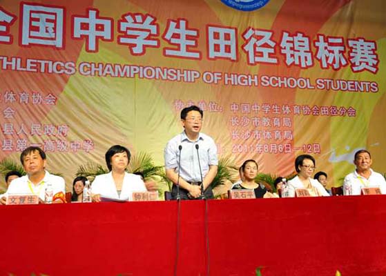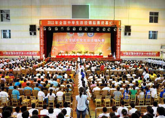 8月11日下午5點,歷時6天的2011年全國中學(xué)生田徑錦標(biāo)賽在湖南省寧鄉(xiāng)縣第一高級中學(xué)體育館圓滿落幕。寧鄉(xiāng)縣委副書記吳石平,寧鄉(xiāng)縣委常委、宣傳部長劉莉霞,寧鄉(xiāng)縣人民政府副縣長鐘利仁,寧鄉(xiāng)縣政協(xié)副主席李純,中國中學(xué)生體育協(xié)會田徑分會的相關(guān)負(fù)責(zé)人出席了閉幕式。