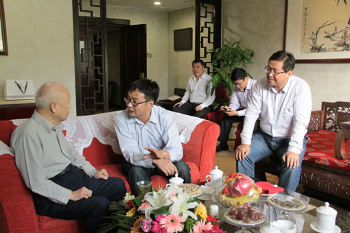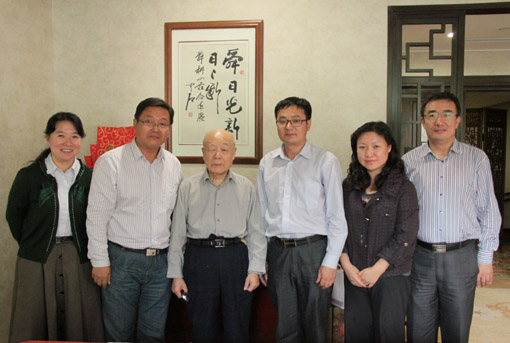 2013年10月10日下午,我校領(lǐng)導(dǎo)逄坤敬校長、劉新利書記、邢麗娟副書記、姜明副校長、趙娟副校長在舜耕山莊拜訪了校友歐陽中石先生。逄坤敬校長向歐陽中石先生介紹了學(xué)校校史館建設(shè)等慶祝建校110周年慶?;顒踊I備工作的情況,并征詢了歐陽先生的意見。