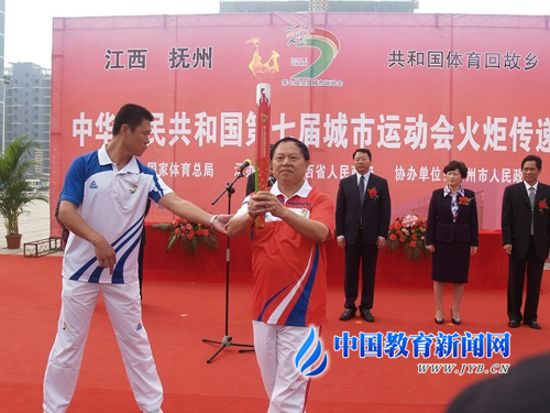 饒祥明校長(zhǎng)擔(dān)任“七城會(huì)”撫州火炬?zhèn)鬟f活動(dòng)第一火炬手
