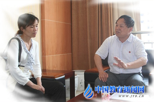 饒祥明校長(zhǎng)經(jīng)常與學(xué)生談心交流