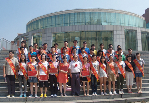 2012年考上清華、北大的36位優(yōu)秀學(xué)子與校長(zhǎng)饒祥明合影留念