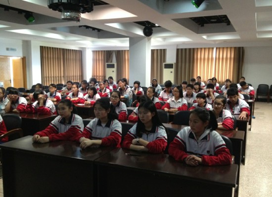 大橋鎮(zhèn)中學的領導和師生參觀了教學樓、食堂、寢室等校園設施,詳細了解了辦學歷史、辦學特色、辦學成績等情況,讓大家對我校的情況有了初步的認識。我校開放式的校史陳列室是一大特色,使得大橋鎮(zhèn)中學的師生停留于此,投入地欣賞了秀中百年以來的風貌,了解了百年老校的發(fā)展和變遷。在秀中的辦學歷程中,共培養(yǎng)出了11位著名院士以及大批海內外知名人士,這正是體現(xiàn)了一所百年老校的深厚的文化底蘊。隨后,我校政教處錢培超主任向大橋鎮(zhèn)中學的師生作了學校情況介紹,結合圖片和視頻,展示了學校的嚴謹科學的管理和優(yōu)秀的教育教學質量。通過“六大周”活動和學生社團活動等介紹,讓學生們感受秀中獨特的文化魅力。我校沈志光校長向大家介紹了我校本次高三第一次全市模擬考試情況,秀中取得了令人滿意的佳績,鼓舞在座的學生抓緊最后的時間,在今年的中考中取得好成績,并熱忱歡迎大家能夠加盟秀中。大橋鎮(zhèn)中學夏付良校長也鼓勵學生們努力拼搏,將來有機會可以進入校齡114周年的名?!阒葜袑W。