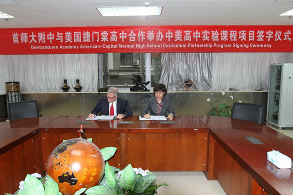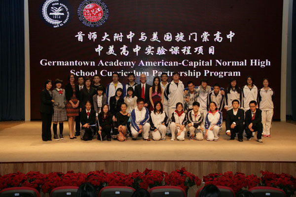 美國捷門棠學校(Germantown Academy)是我校有著長期友好交流關系的姐妹校,是我校在美國孔子課堂的合作校,同時也是我校中美高中實驗課程項目的合作校。捷門棠學校坐落在美國費城,賓夕法尼亞州,成立于1759年,是美國第一所非教會性質的獨立學校。 在250周年校慶日上,美國總統奧巴馬特意致賀信一封,高度評價了該校為不同時代的美國發(fā)展在人才培養(yǎng)方面所做出的杰出貢獻。捷門棠學校校長James Connor先生、副校長Richard Schellhas先生、美國大學升學指導主管Harvie Ruggules女士、孔子課堂中國項目主任Susan Xuan女士本周訪問了我校:針對中美高中實驗課程項目,兩校校長及領導召開了由全體學生、家長參加的啟動儀式暨見面會,走進了中外教課堂,召開了學生座談會、中外教座談會;針對孔子課堂項目,兩校校長進一步探討了兩校之間的文化交流與教師互派;針對友好交流項目,兩校初步制訂了新一學年的友好互訪和學習活動。