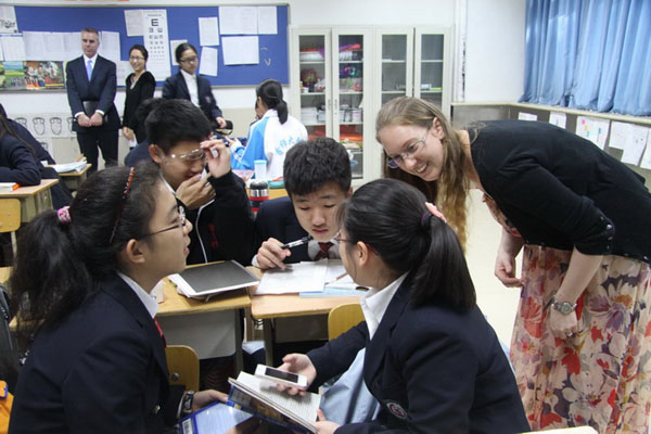 兩校校長和領導一起走進了中美學生的中外教課堂,觀摩學生的課堂表現。通過觀摩課堂,拉近了師生的距離,校長們對學生和老師有了更深的了解,學生們也更加堅定了目標,對未來的三年充滿了斗志。