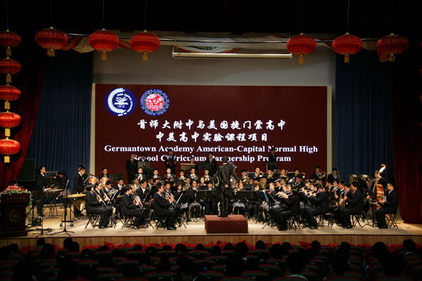 中午的時間,中美年級學生和學校管樂團為校長們奉上了一場激動人心、美輪美奐的視覺、聽覺盛宴。流暢的英文,恢宏的交響樂,歌聲嘹亮的女生英文二重唱,風趣幽默的具有中國特色的皮影,歡快的倫巴,古典與現代完善融合的芭蕾與街舞,動人心弦的梁祝合奏等,得到了全體校長和老師們的高度贊揚。部分家長們也觀看了這場演出,他們對孩子們入學兩個月以來發(fā)生的巨大變化倍感欣慰,對學校的感激之情更是無以言表。