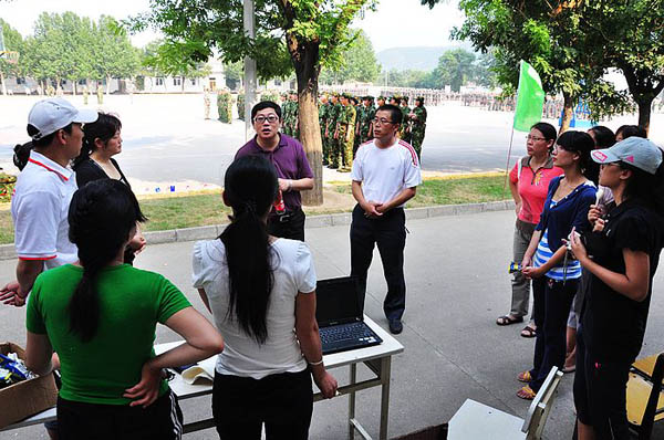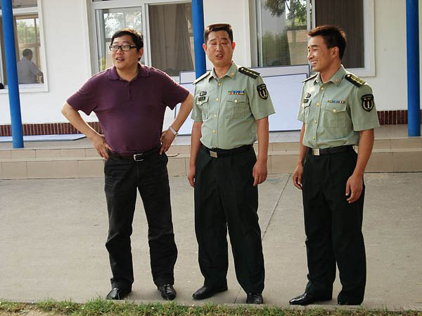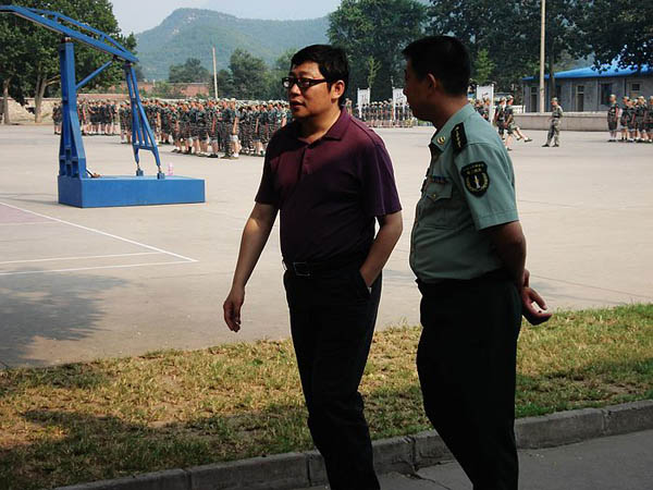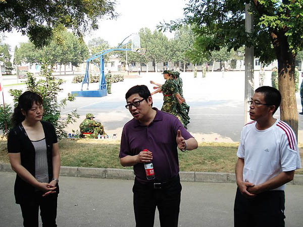 2011年8月22日下午3點,沈軍校長到軍訓(xùn)基地慰問正在接受軍事訓(xùn)練的學(xué)生以及隨行教師。在96528部隊首長、八一中學(xué)學(xué)生處吳安寶老師和高一年級組組長崔素云老師的陪同下,沈校長視察了學(xué)生的訓(xùn)練情況,詳細詢問了學(xué)生的生活及身體狀況,并為師生們分發(fā)了消暑慰問品。學(xué)生們歡欣鼓舞,齊聲高唱八一中學(xué)校歌,并向校長致敬。