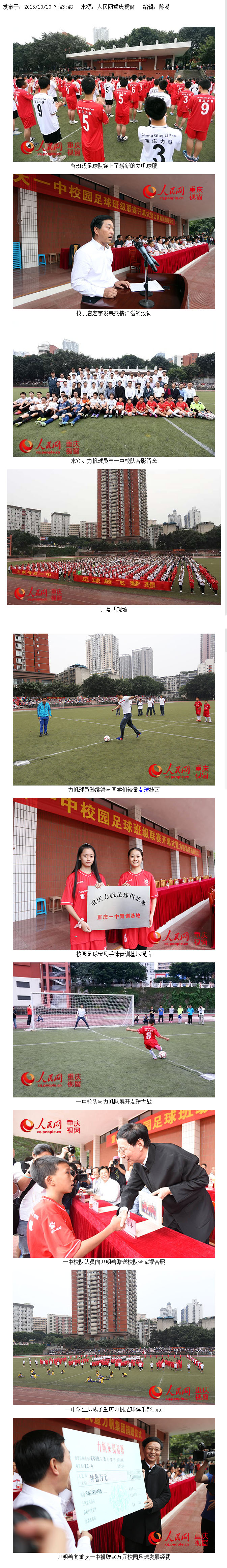 “一中足球與力帆足球緊緊相聯(lián),中超賽場上,力帆足球隊的每一場比賽,時刻牽動著一中師生的情結(jié)。”據(jù)重慶一中校長唐宏宇介紹,今年3月9日,一中與重慶力帆足球俱樂部簽署了共建校園足球協(xié)議以來,學校制定了學校班級聯(lián)賽制度,開設足球選修課;并成立了初中、高中校足球隊,招收高水平的足球運動員;有著三十多年歷史的教職工足球隊也進一步加強了訓練和比賽。今年,重慶一中被教育部授予“首批全國青少年校園足球特色學校”, 被市教委授予“重慶市首批校園足球特色學?!薄?br />