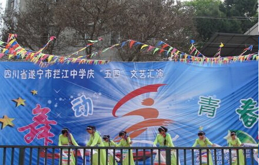 4月28日上午8:00,攔江中學約3000名師生齊聚學校操場隆重舉行了慶“‘五?四’舞動青春”文藝匯演。