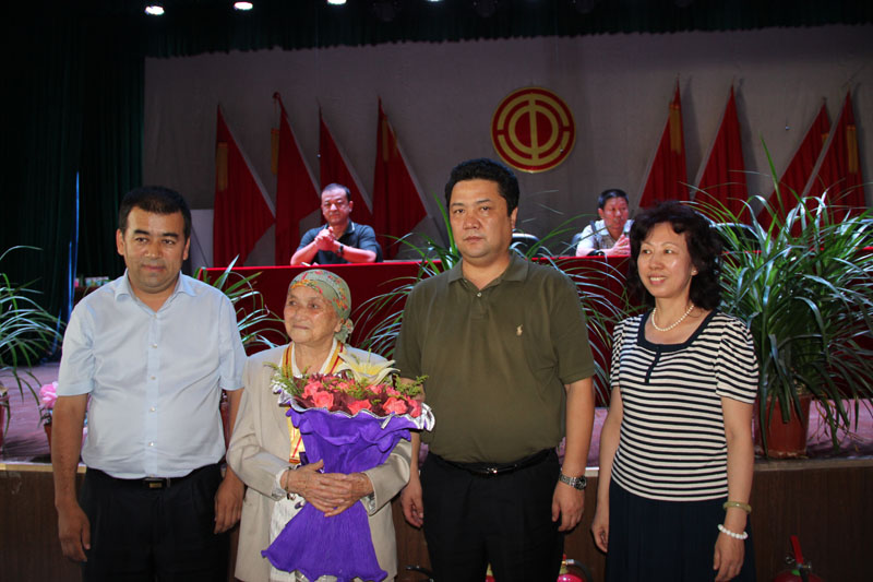 新疆實驗中學離休老領導熱孜萬·買熱甫就是這樣一位在花季年華就投身抗戰(zhàn),為全國解放、為新疆和平解放和發(fā)展建設奉獻一生的革命前輩,在抗戰(zhàn)勝利70周年即將來臨之際,中共中央國務院、中央軍事委員會授予她“中國人民抗日戰(zhàn)爭勝利70周年紀念章”,以表彰她在抗日戰(zhàn)爭中做出的積極貢獻。教育廳副廳長木合甫力·艾山代為頒發(fā)獎章,教育廳老干處處長李建希致頒獎詞,校長唐玉華代表全校師生獻花,與會的師生員工報以熱烈的掌聲向這位老人表達了崇高的敬意。