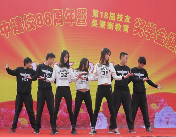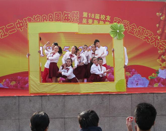 大會(huì)結(jié)束后,舉行了“慶校慶文藝匯演”,在現(xiàn)代舞《青春紀(jì)念冊(cè)》拉開帷幕,舞蹈《我是誰》、《改變》、《街舞世界》、《青花瓷》、《紅是紅祿是祿》等,同學(xué)們以優(yōu)美的舞姿,燦爛的笑容,抒發(fā)了全校師生熱愛祖國(guó)、熱愛家鄉(xiāng),熱愛母校的美好情感;歌伴舞、拉丁舞、相聲、小品表演,展現(xiàn)出新一代二中學(xué)生積極向上、朝氣蓬勃的精神面貌。