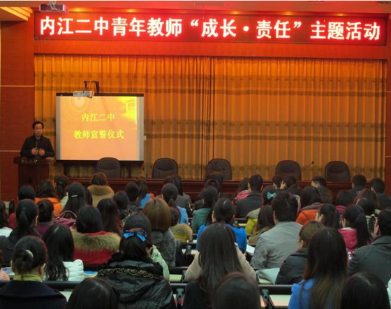 為推動(dòng)廣大教師將社會(huì)主義核心價(jià)值觀內(nèi)化為價(jià)值觀念,外化為自覺(jué)行為,形成一支師德高尚、業(yè)務(wù)精湛的高素質(zhì)教師隊(duì)伍,3月6日,內(nèi)江二中在青年教師中開(kāi)展了“成長(zhǎng)·責(zé)任”主題教育活動(dòng)。
