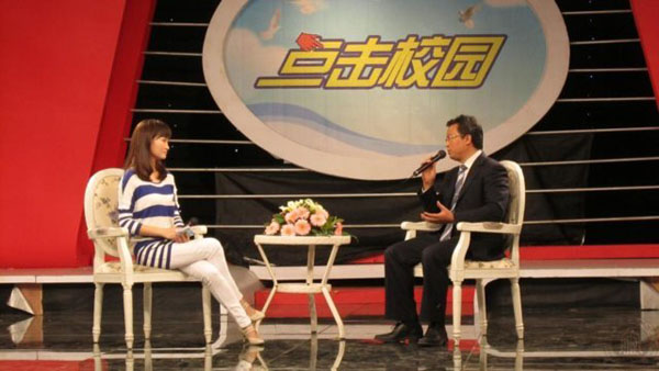田間校長與四川電視臺主持人在節(jié)目中現(xiàn)場訪談