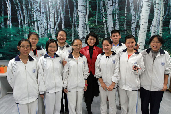 初見(jiàn)田烈校長(zhǎng)本人,倍感親切。她剛剛獲得了“保定市突出貢獻(xiàn)校長(zhǎng)”的榮譽(yù)稱號(hào)。從她的目光里可以看出她對(duì)于教育事業(yè)的無(wú)比熱愛(ài)以及對(duì)學(xué)生們真切的關(guān)心。田烈校長(zhǎng)向我們一一列舉保定一中的校運(yùn)會(huì)、科技節(jié)、藝術(shù)節(jié)、朗誦會(huì)、學(xué)生論壇等多種多樣的活動(dòng),她的講解讓我們明白了這所以高考成績(jī)聞名的一中的學(xué)習(xí)生活并不是單調(diào)灰暗的,而是旨在培養(yǎng)學(xué)生的綜合素質(zhì),謀求全面發(fā)展。從全天開(kāi)放的圖書(shū)館,每周安排的豐富的校園文化與科技講座及視頻欣賞課程,到科技館貼滿墻的獨(dú)具創(chuàng)意的課題成果,讓我們感受到一中學(xué)生多彩的課余文化生活。向人們展現(xiàn)了現(xiàn)代高中生“嚴(yán)謹(jǐn)求實(shí),勤奮創(chuàng)新”的精神。田烈校長(zhǎng)說(shuō),真正優(yōu)秀的學(xué)生不會(huì)因?yàn)橹R(shí)的不斷增加而喪失想象力,因?yàn)閼?yīng)試教育如果泯滅了激情與朝氣,是得不償失的。而一中“站在學(xué)生的角度”也是潤(rùn)物細(xì)無(wú)聲地?zé)òl(fā)了每一位學(xué)生的青春,在一中,所有的學(xué)生都會(huì)參與到班會(huì)、藝術(shù)節(jié)、讀書(shū)節(jié)等各種活動(dòng)中來(lái),“給每個(gè)孩子展示的機(jī)會(huì),讓學(xué)生們展示自己的才華與思辨。高中生活絕不是黑暗的,而是多彩的、奮進(jìn)的、歷經(jīng)磨礪不斷成長(zhǎng)的青春飛揚(yáng)的美好時(shí)光?!碧锪倚iL(zhǎng)說(shuō)。