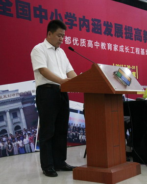 首都優(yōu)質(zhì)高中教育家成長(zhǎng)工程聯(lián)盟校代表孫孟遠(yuǎn)校長(zhǎng)在發(fā)言中表明,希望加入聯(lián)盟校實(shí)現(xiàn)教育軟實(shí)力的共享,要把握機(jī)遇,延伸生命,用切實(shí)的行動(dòng)去實(shí)現(xiàn)人才強(qiáng)教,人才強(qiáng)國(guó)這一重任。