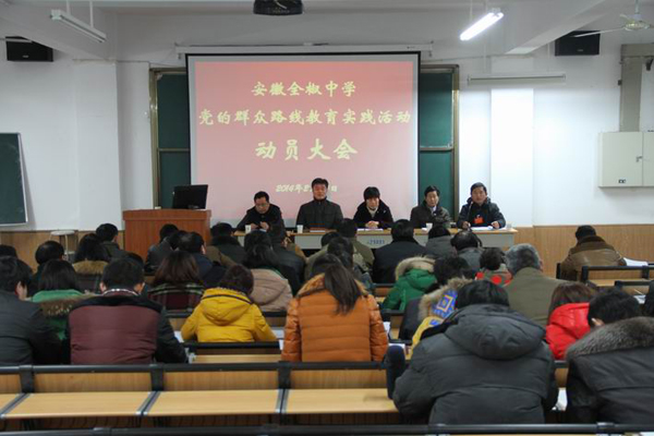 根據(jù)中共全椒縣委黨的群眾路線教育實(shí)踐活動(dòng)領(lǐng)導(dǎo)小組統(tǒng)一部署,縣委督導(dǎo)組安排,2月20日下午,全椒中學(xué)在高二樓階梯教室隆重召開(kāi)深入開(kāi)展全椒中學(xué)黨的群眾路線教育實(shí)踐活動(dòng)動(dòng)員大會(huì)??h政府副縣長(zhǎng)王莉,縣委黨的群眾路線教育實(shí)踐活動(dòng)第十二督導(dǎo)組組長(zhǎng)謝兆田、副組長(zhǎng)余昌和出席了會(huì)議。全椒中學(xué)黨的群眾路線教育實(shí)踐活動(dòng)領(lǐng)導(dǎo)小組組長(zhǎng)、校長(zhǎng)童萬(wàn)俊作動(dòng)員報(bào)告,對(duì)學(xué)校開(kāi)展黨的群眾路線教育實(shí)踐活動(dòng)作了全面動(dòng)員和重要部署。王莉副縣長(zhǎng)在動(dòng)員會(huì)上發(fā)表講話(huà)。督導(dǎo)組組長(zhǎng)謝兆田作了督導(dǎo)工作講話(huà)。會(huì)議由學(xué)校黨總支副書(shū)記、黨的群眾路線教育實(shí)踐活動(dòng)領(lǐng)導(dǎo)小組副組長(zhǎng)陳正峰主持。