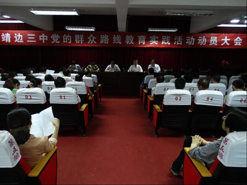 5月29日晚7時,靖邊三中全體教職工在大會議室參加黨的群眾路線教育實踐活動動員大會。本次會議胡耀洲書記宣讀了靖邊三中黨的群眾路線教育實踐活動領導小組、實施方案、明確了工作任務。王匯水校長向全體教職工轉達了上級教育部門活動精神、對靖邊三中開展黨的群眾路線教育實踐活動提出了意見、動員全體教職工著力提高新形勢下勤奮工作、勇于創(chuàng)新的執(zhí)教能力,全面提高教育教學質量。