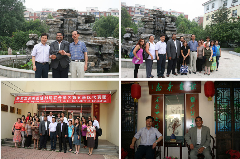 于2013年7月1日上午到我校交流訪問。主要來訪者有:洛杉磯聯(lián)合學(xué)區(qū)第五學(xué)區(qū)主管:胡安-卡勒斯-德拉科魯茲先生及其夫人、兒子,南門中學(xué)副校長:卡勒斯—嘉瑞巴蒂先生、威廉安東小學(xué)校長,也是我們的老朋友:侯賽-赫南達(dá)先生等22人。