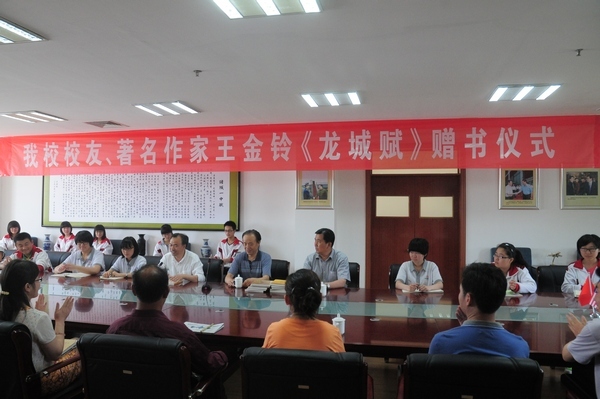 5月23日,我校舉行著名作家王金鈴《龍城賦》贈(zèng)書儀式,王克田校長、邱昌茂副校長、部分語文教師和學(xué)生代表出席了贈(zèng)書儀式。