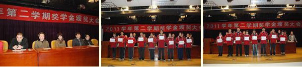 2月6日下午,松江二中舉行2011學年第二學期開學典禮暨阿克蘇諾貝爾獎學金頒獎大會,阿克蘇諾貝爾公司總監(jiān)助理潘雯女士應邀為獲獎學生頒獎。校長王鐵樺,黨總支書記俞金飛,副校長王小軍等出席大會。