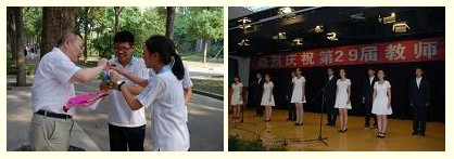 慶祝大會上,還宣讀了2012學年榮獲教育教學評比、教育科研獎項的40多位教師的名單。校長王鐵樺勉勵老師們不斷進取、追求卓越,讓每一位學生收獲快樂、收獲成功。