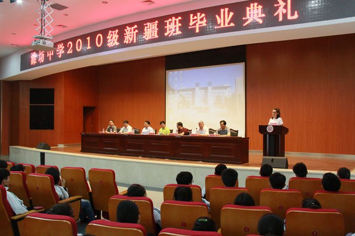 2014年6月9日上午,我校舉行首屆新疆班畢業(yè)典禮。副校長馬進(jìn)義主持,學(xué)校全體領(lǐng)導(dǎo)班子成員出席了典禮,新疆內(nèi)高班全體師生參加了首屆畢業(yè)班典禮。