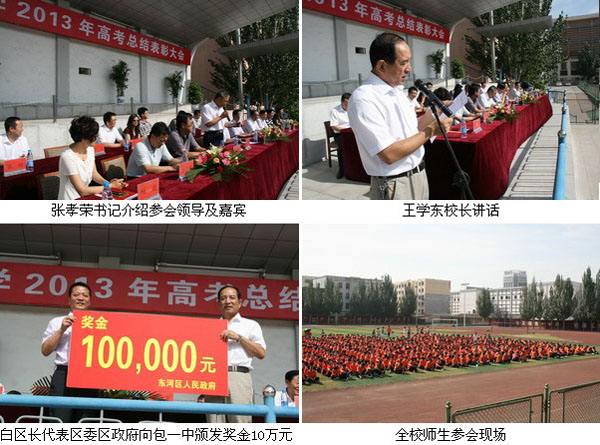 升國旗、奏唱國歌后,張書記向大會(huì)介紹了各位領(lǐng)導(dǎo)、來賓,隨后王學(xué)東校長(zhǎng)講話,對(duì)2013年高考進(jìn)行總結(jié)。白繼文副區(qū)長(zhǎng)代表東河區(qū)委、區(qū)政府向包頭一中頒發(fā)10萬元獎(jiǎng)金,楊婕副校長(zhǎng)宣布包頭一中2013年高考表彰決定。