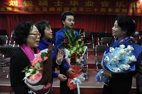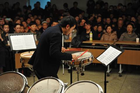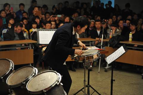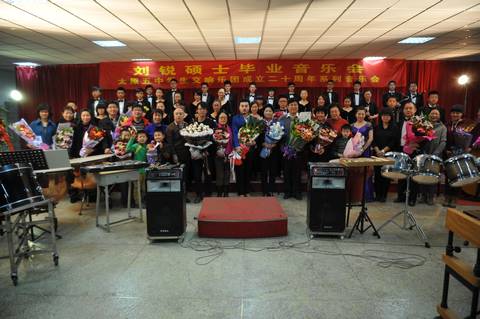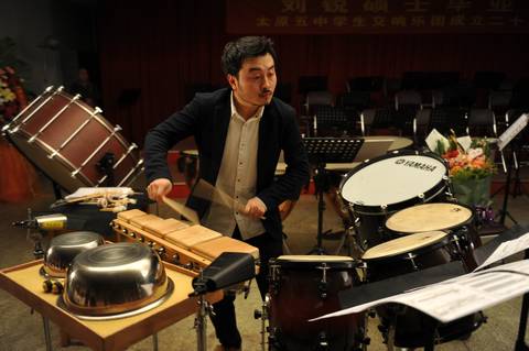 2013年11月23日,下午5點,我校校友,現(xiàn)中央音樂學院打擊樂教師劉銳,在母校樂團成立二十周年之際,將自己的碩士畢業(yè)音樂會帶回了母校樂團,為母校師生帶了一次全新的打擊樂音樂體驗,并且還與學校樂團的小學弟學妹合作演奏了協(xié)奏曲《震怒之日》,值得一提的是《震怒之日》這首作品是作曲家為劉銳碩士量身創(chuàng)作,并且這次在母校的演出也是這首作品的首次演出。