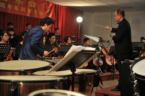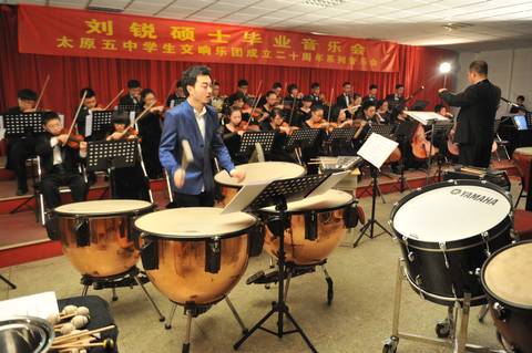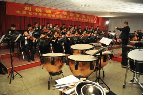 時光荏苒,這20年里,一批批熱愛音樂的莘莘學子們將自己的青春交付于他,把這段難忘的經(jīng)歷譜寫成自己人生道路上一段別樣的風景。如今,太原五中交響樂團已從一個蹣跚學步的嬰兒成長為一位朝氣蓬勃的少年。今天的五中,正在以王一瑛校長的領導下,堅持著“培養(yǎng)基礎寬厚、潛能充足、全面發(fā)展、特長突出的精尖人才”的辦學特色,走在山西省基礎教育的前列。同時,太原五中交響樂團也在不斷摸索著前進,積累著寶貴的經(jīng)驗,多次榮獲全國中學生校園春節(jié)晚會特等獎、一等獎,并代表大陸學生赴香港參加香港回歸演出。今天的樂團吸引了從初一到高三追逐音樂夢想的孩子們。通過排練,孩子們增強合作和集體意識,也為孩子們搭建了一個展示自我的平臺。從本學期開始,太原五中交響樂團將舉辦“建團20周年”系列音樂會,有畢業(yè)生專場、打擊樂專場、室內樂專場等多種形式的演出,為同學們帶來別開生面的視聽盛宴。