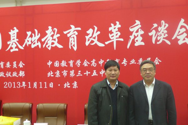 2013年1月11日,2013年全國(guó)基礎(chǔ)教育改革座談會(huì)在北京舉行。全國(guó)人大常委會(huì)副委員長(zhǎng)、民進(jìn)中央主席嚴(yán)雋琪和教育部副部長(zhǎng)劉利民出席座談會(huì)。我校王中立校長(zhǎng)就我校拔尖創(chuàng)新學(xué)生培養(yǎng)的課程與課堂建設(shè)做了專題發(fā)言,贏得了與會(huì)領(lǐng)導(dǎo)和教育同行的高度認(rèn)可。