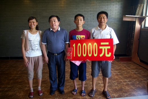 宴會開始時,萬金陵校長激情致辭,他說:“祝錢峰同學(xué)考入北京大學(xué),感謝錢峰同學(xué)的父母對九江一中的信任,感謝星子人民對九江一中的支持!”在簡要通報了九江一中今年高考的情況之后,他說:“希望星子有更多的優(yōu)秀學(xué)子進(jìn)入九江一中學(xué)習(xí),通過九江一中進(jìn)入理想的名牌大學(xué)深造,成為國家的優(yōu)秀人才,做出巨大成就,為九江一中爭光,為家鄉(xiāng)爭光,為祖國爭光!”隨后,萬金陵校長代表學(xué)校向錢峰同學(xué)頒發(fā)了一萬元獎學(xué)金,這是九江一中首次向考上北大、清華、香港中文大學(xué)等全國頂級名校的優(yōu)秀學(xué)子頒發(fā)獎學(xué)金。