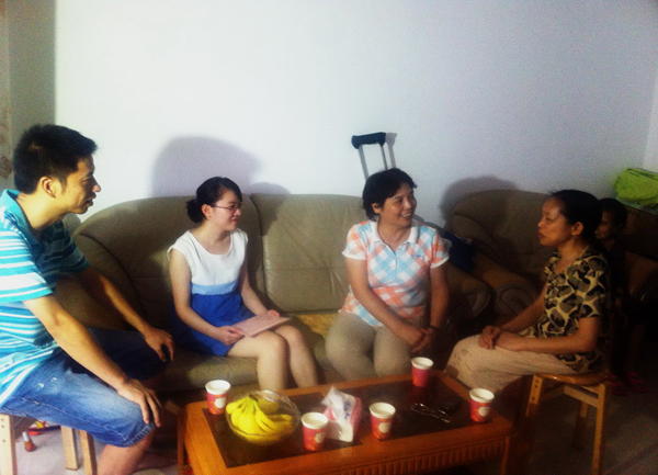 2013年8月26日下午,冒著酷暑烈日,我校校長吳勤、辦公室副主任姚宜品和高三(18)班班主任朱偉強(qiáng),前往患癌癥同學(xué)羅彥妮家進(jìn)行慰問。