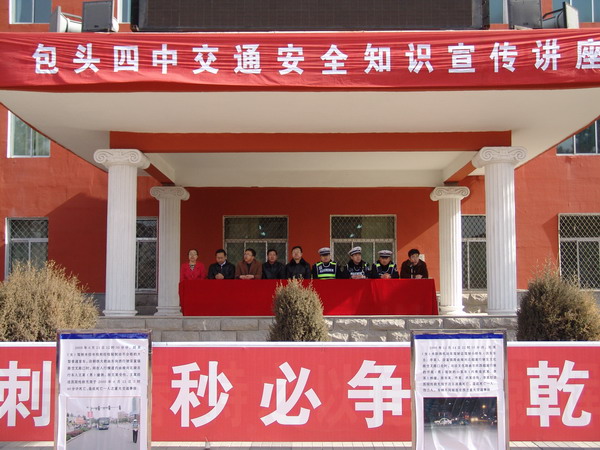 2011年3月18日上午,我校召開了2011年包頭四中交通安全宣傳講座。吳生強(qiáng)校長(zhǎng)、陳剛書記及全體校領(lǐng)導(dǎo)和青山區(qū)交警二中隊(duì)胡俊峰隊(duì)長(zhǎng)一行參加了此次講座。會(huì)議由王志軍副校長(zhǎng)主持。首先王志軍副校長(zhǎng)代表學(xué)校對(duì)青山區(qū)交警二中隊(duì)多年來為我校師生的交通安全所做的努力和付出表示感謝。要求廣大師生共同參與交通安全,遵章守法,為創(chuàng)造一個(gè)新的交通新秩序、新環(huán)境共同努力。會(huì)議特別邀請(qǐng)交警二中隊(duì)劉記林警官做“交通安全宣傳”講座。劉警官?gòu)娜粘⑴c交通中應(yīng)該學(xué)會(huì)自我保護(hù)的細(xì)節(jié)及學(xué)校施工期間所注意的交通常識(shí)等幾方面做了詳細(xì)的講解。會(huì)議結(jié)束后學(xué)校組織學(xué)生觀看了一些交通案例的展板。通過這次交通安全宣講,使我校學(xué)生在交通法規(guī)、交通參與等方面有了更深層次的學(xué)習(xí)和理解,通過對(duì)案例的觀看和了解,更強(qiáng)化了全體師生遵守交通法規(guī)的思想意識(shí)。