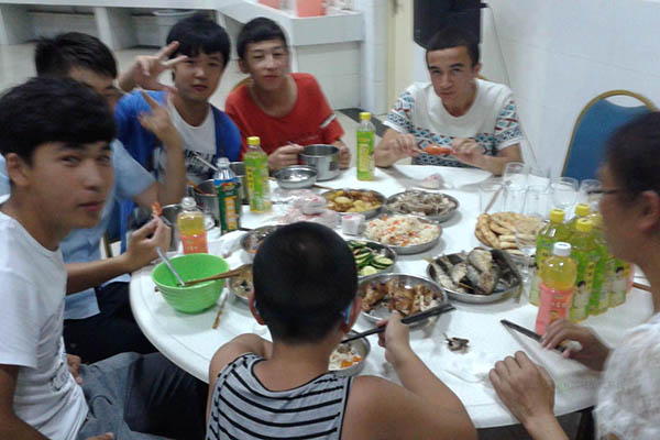 為使在異地他鄉(xiāng)的新疆班孩子享受家的溫暖,學(xué)校開放微機室,讓學(xué)生與家人通過QQ等網(wǎng)絡(luò)聊天。清真餐廳的師傅們一大早就開始準(zhǔn)備團圓飯,為孩子們精心準(zhǔn)備了清真月餅、抓飯、囊、羊肉等具有濃郁民族特色的飲食。班主任和任課老師犧牲了與家人團圓的機會,跟孩子們一起烤肉、吃抓飯等。校園內(nèi)到處洋溢著的濃郁的節(jié)日氣氛。